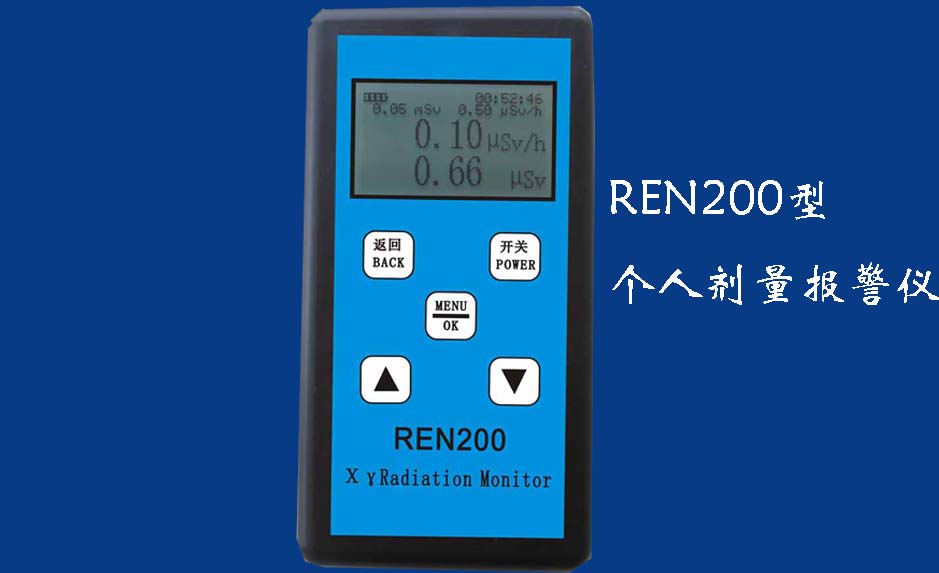REN200A 個人輻射報警儀REN200A型X、γ輻射個人劑量當量HP(10)監(jiān)測儀(簡稱:個人劑量報警儀)內(nèi)置高靈敏度蓋格計數(shù)管為探測器,主要用來監(jiān)測各種放射性工作場所的X、γ以及硬β射線的輻射,具有響應快,測量范圍寬的特點。能顯示工作場所的劑量當量率和累積劑量,更換電池時,日期及累積數(shù)據(jù)能永久保存。可選配RenRiPersonal個人劑量管理軟件,該軟件可存儲多個人的歷史數(shù)據(jù),能記錄日累積、月累積、年累積、輻照時長、計算平均劑量率、扣除或不扣除本底輻射,且以文字和圖譜的方式展現(xiàn)數(shù)據(jù)。廣泛應用于核電站、加速器、鋼鐵、化工、同位素應用、工業(yè)X、γ無損探傷、放射醫(yī)療、鈷源治療、γ輻照、放射性實驗室、核設(shè)施周圍環(huán)境監(jiān)測等領(lǐng)域中的工作人員進行個人安全防護監(jiān)測及放射性提示。&nb